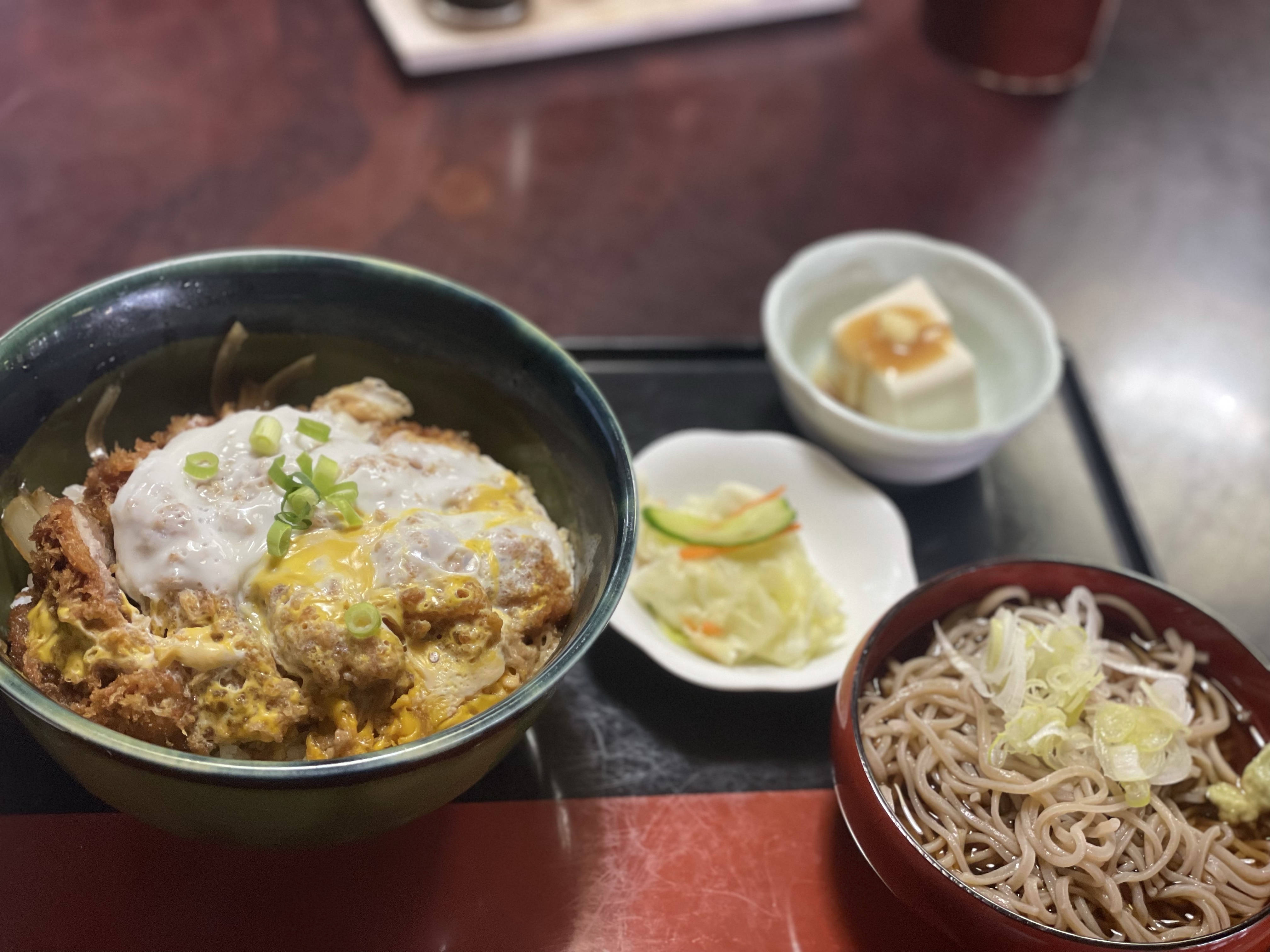 こちらおすすめの一つのカツ丼定食でございます。
